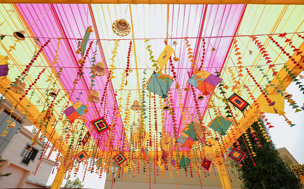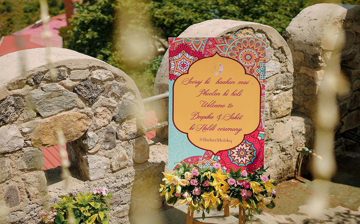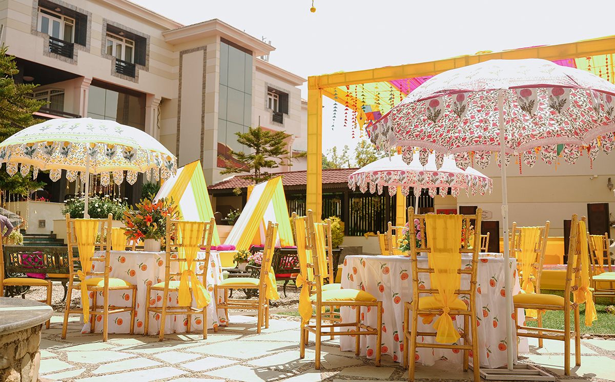 The poolside venue embraced an Indie-pop culture theme with a vibrant floral decor of yellow and orange marigolds. Halima Khan Nizami’s intricate henna designs added an artistic touch to the celebration. A lively blend of music, dance, and fun marked this traditional event.